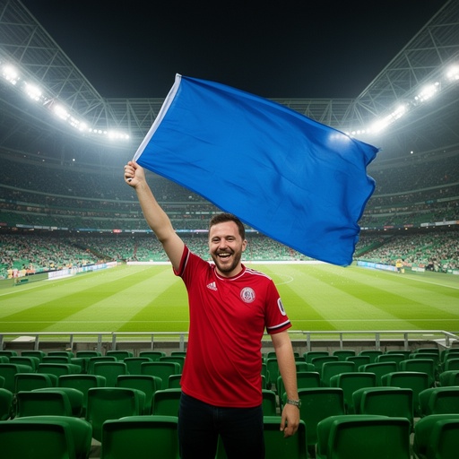 φτιαξε μου μια εικονα ενος φιλαθλου να πανηγυριζει μεσα σε ενα γηπεδο