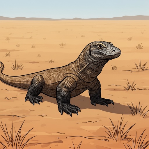 A T-Rex walking across a desert landscape