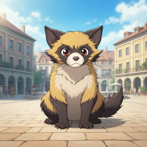 A fox and a dog becoming friends, with a glorious ancient civilization in the background