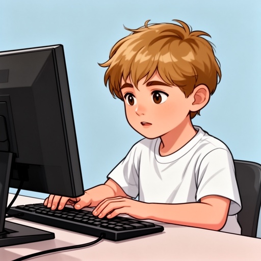 A boy walking down a hallway with pictures on the wall