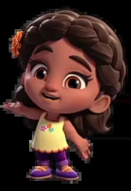 A girl with olive brown skin, long, straight dark brown hair, and expressive brown eyes wearing a strawberry pink jacket...