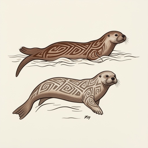 A barefooted boy with black hair wearing gray, sleeveless upper body clothing with gray fur, knee-length pants with gray...