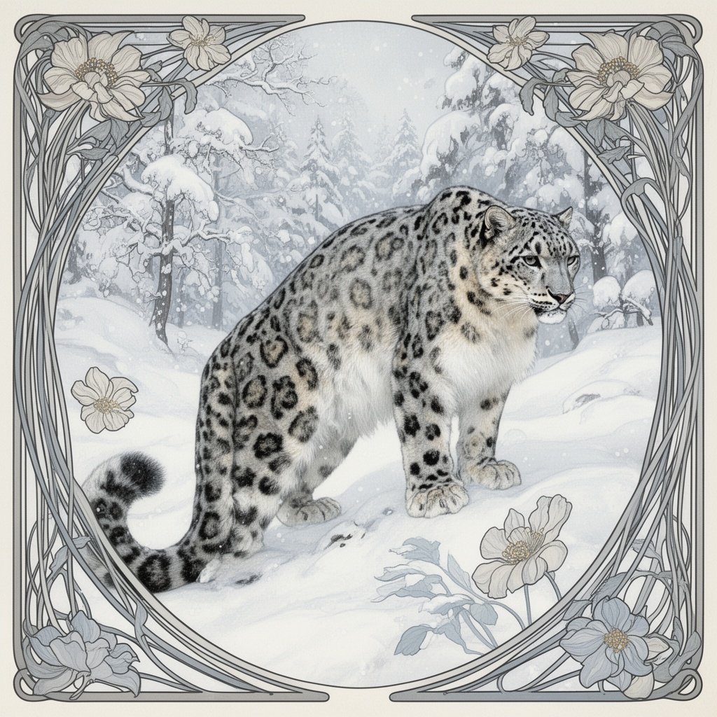 A snow leopard in a winter wonderland