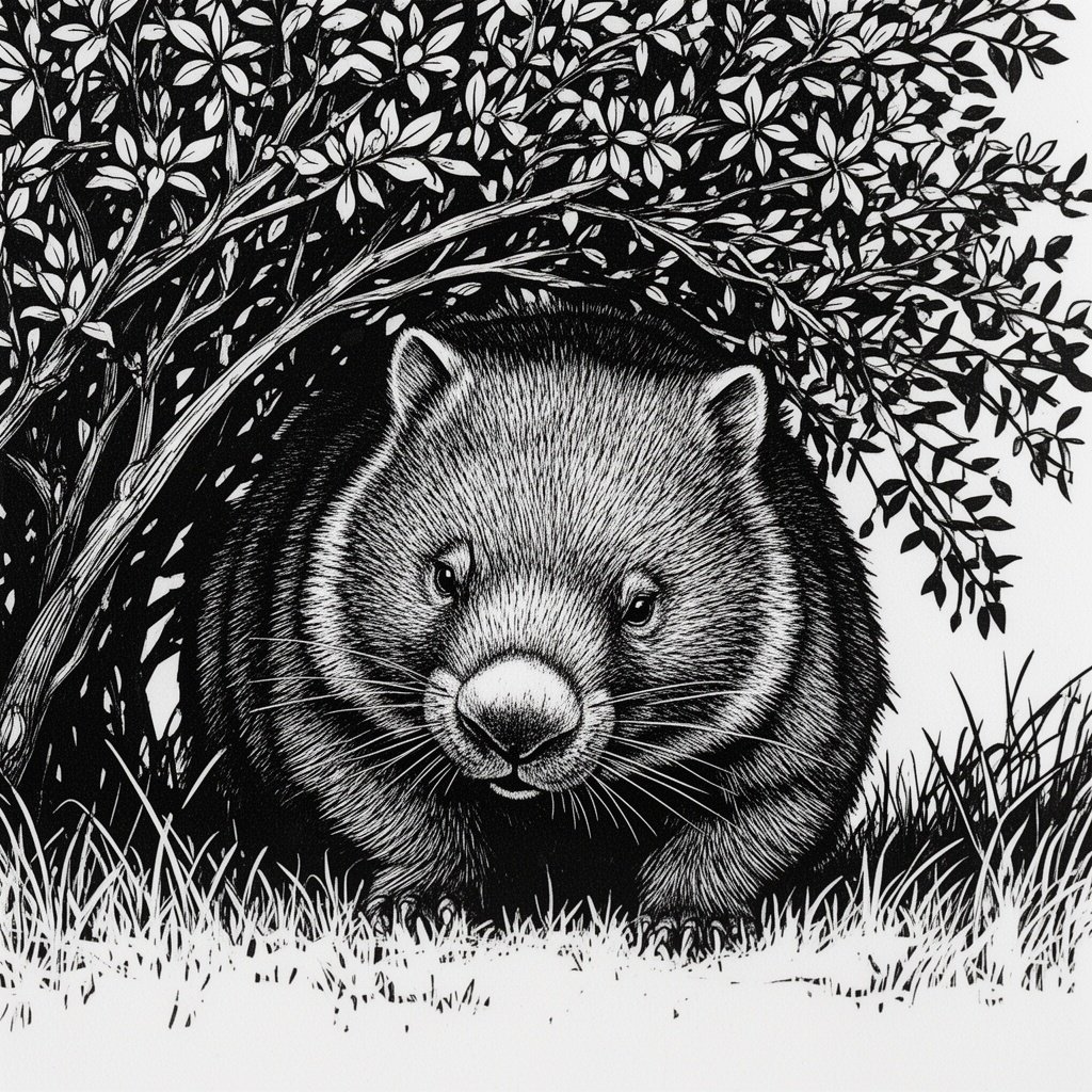 A big cat-like creature with thick, deep purple fur walking through an empty street in a picturesque city under a sunset...