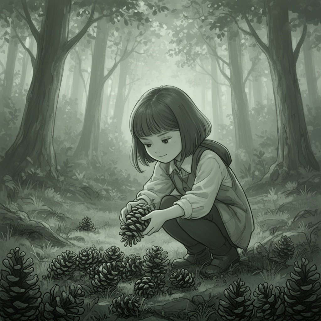 A mysterious forest clearing at twilight with fireflies dancing around ancient stone ruins