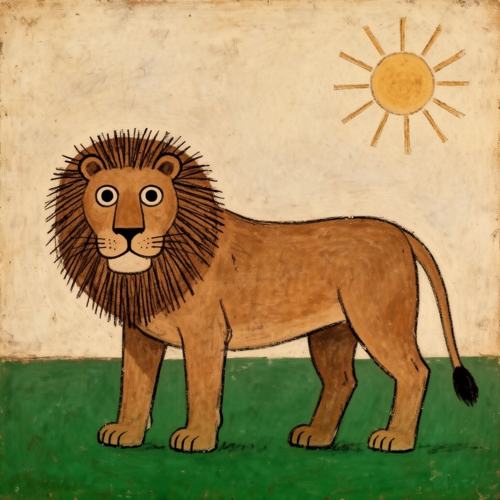 A lion walking across a grassland