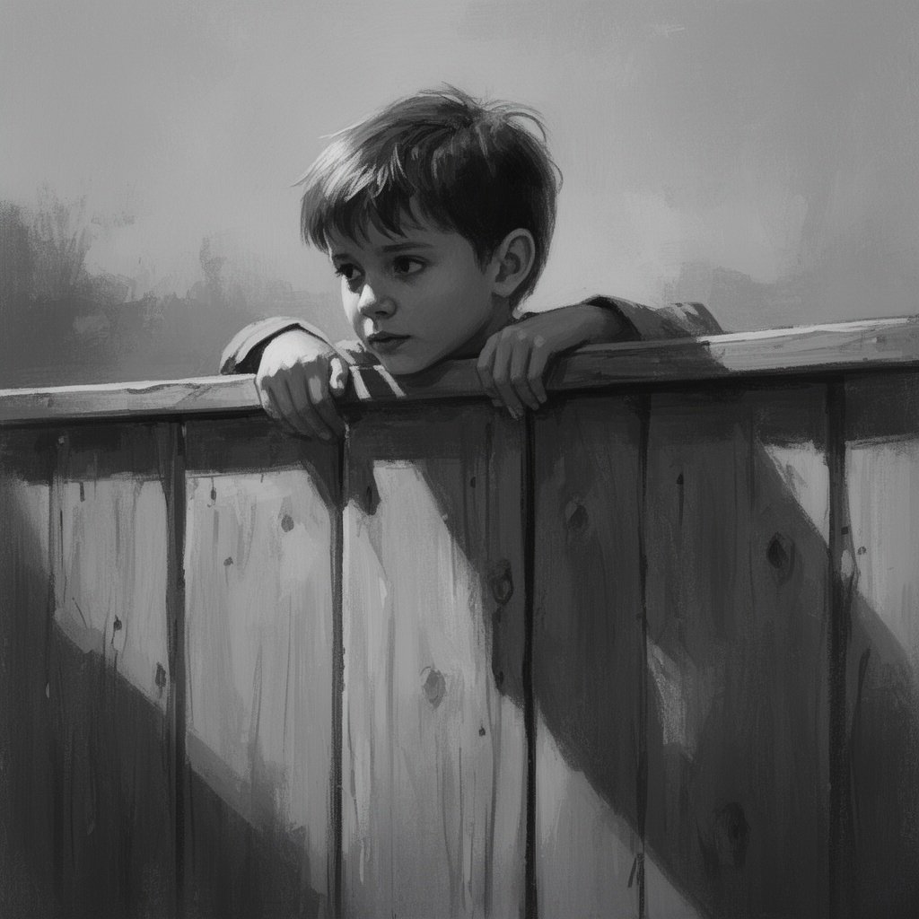 A boy looking over a fence