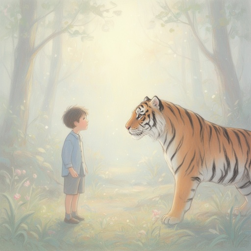 A boy encountering a tiger