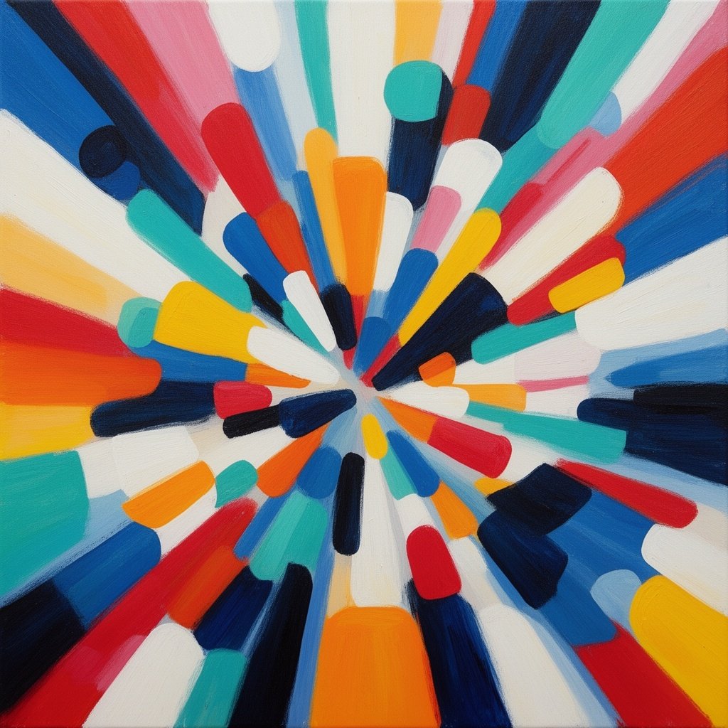 Explosive color fields representing the emotion of joy, with dynamic shapes and bold contrasts