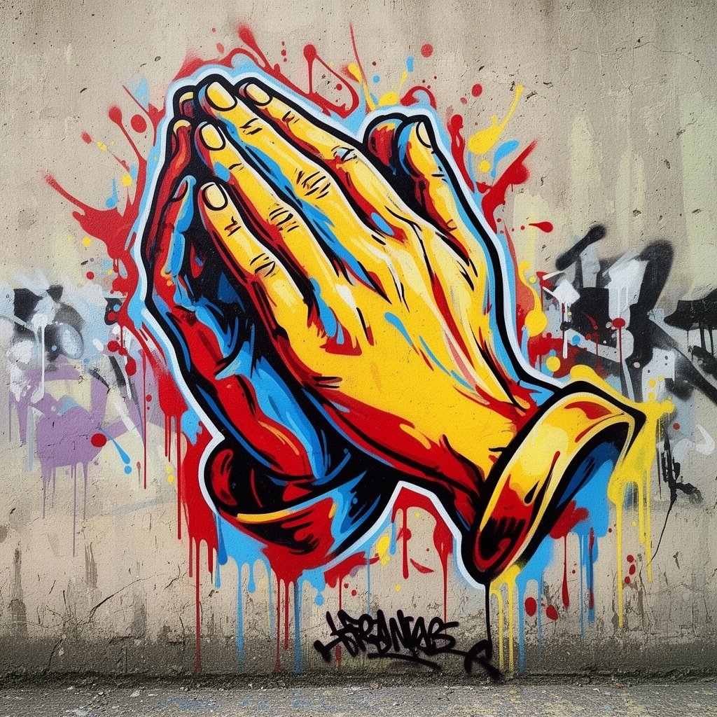 Praying hands dripping in paint