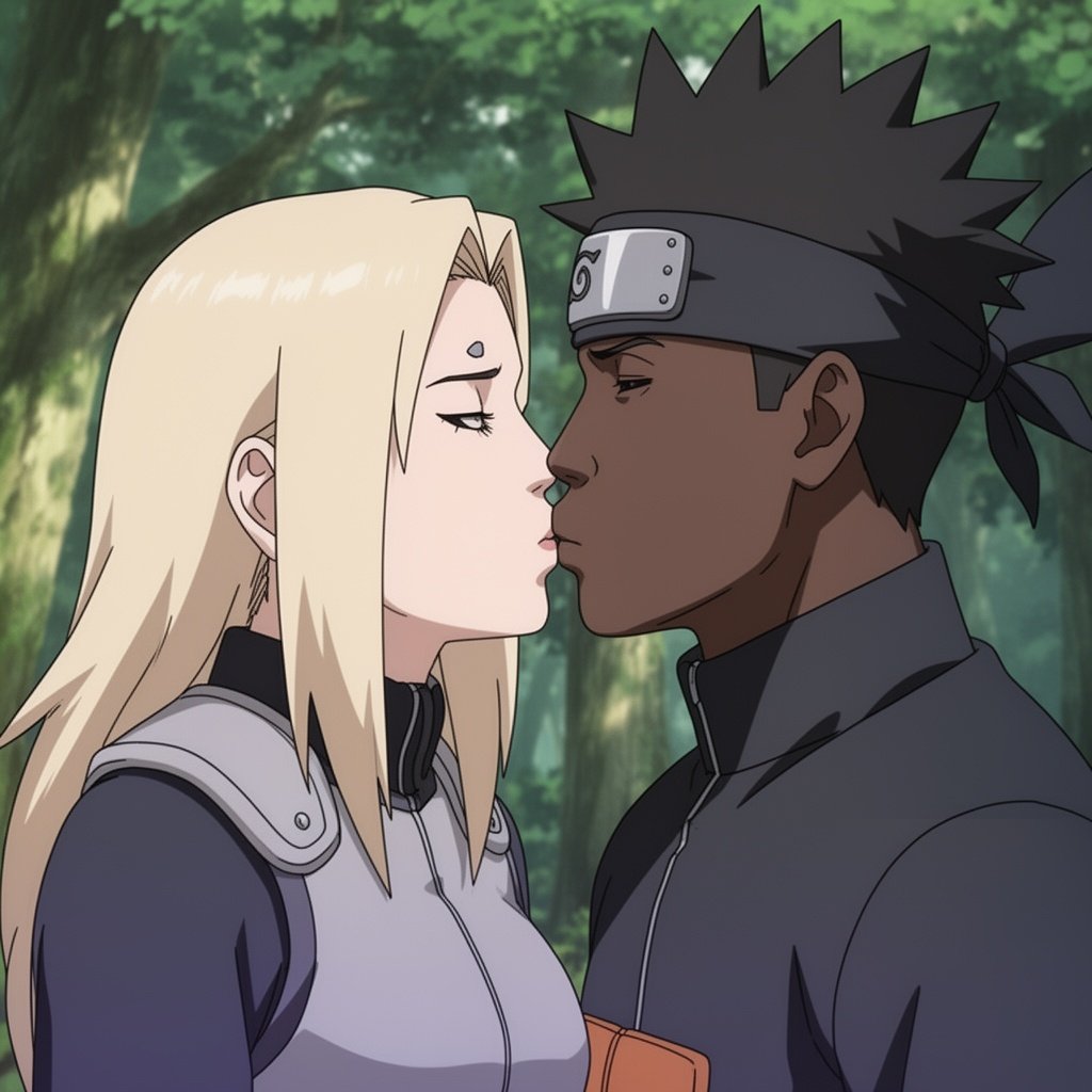 Tsunade and a black man are having kiss
